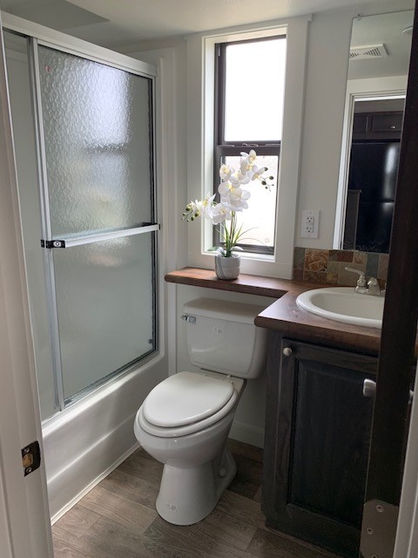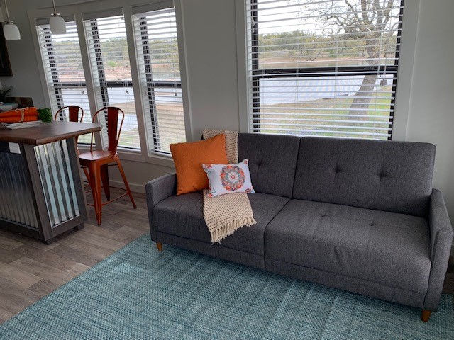 Introducing the Platinum Cottages Lakeview Tiny Home - an exquisite blend of luxurious comfort and functional design, perfect for those seeking a compact yet upscale living experience. This beautifully crafted 400 sq ft haven is the ultimate retreat, providing both elegance and simplicity in a compact space. The Lakeview's breathtaking design features an open-concept floor plan that maximizes every inch of space, making it the perfect haven for relaxation and entertaining. The fully-equipped kitchen showcases modern stainless-steel appliances, custom cabinetry, and a stylish island, ensuring a delightful culinary experience.